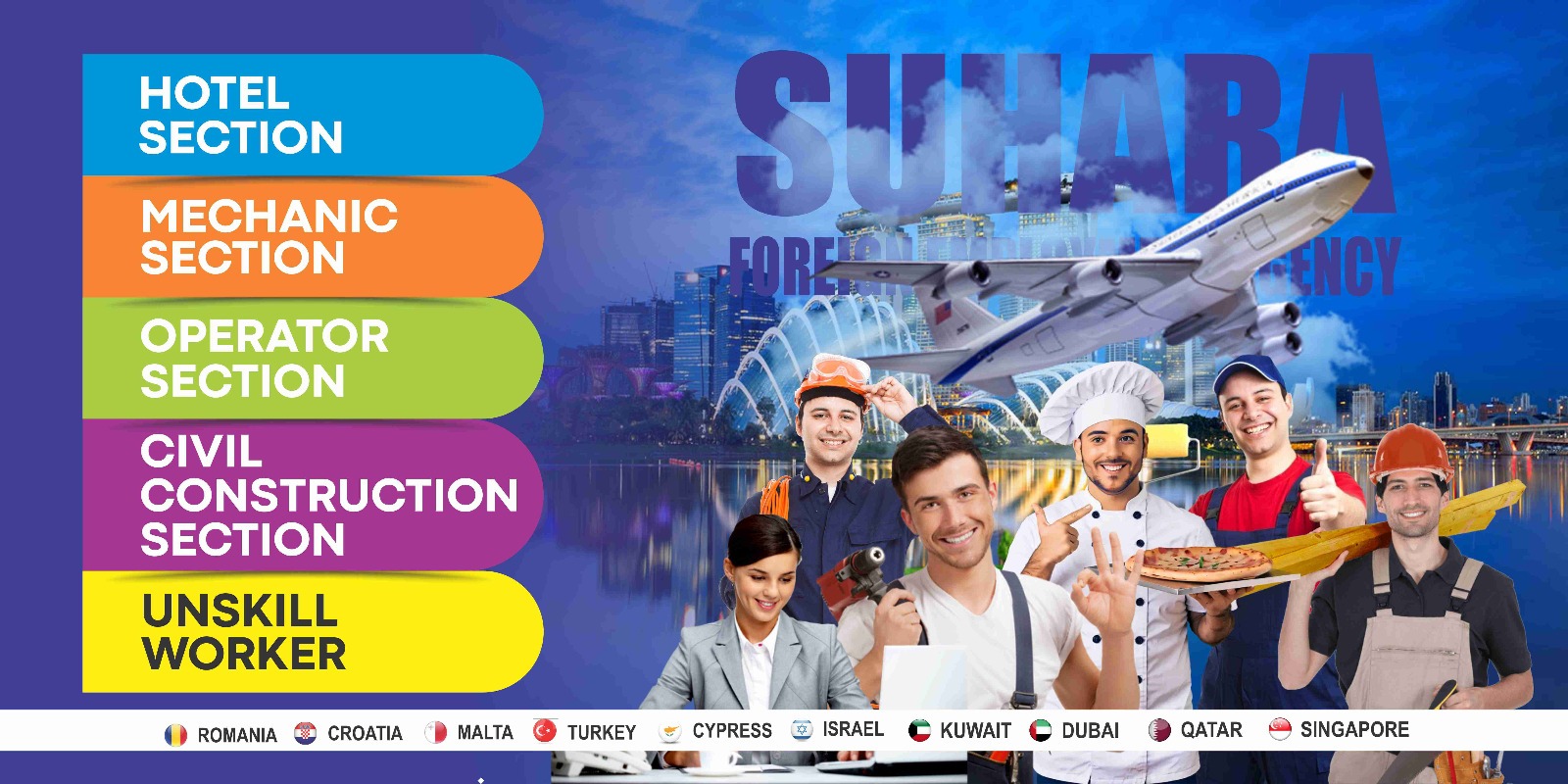 Suhara Foreign Employment has been registered under the Foreign Employment Bureau under labor license No.2185. We are proud to introduce Suhara Foriegn Employment as pioneers in Foreign manpower recruitment as the leading agency in Sri Lanka today. During the past years, Suhara F Employment has grown rapidly and come to the global exposure. We have recruitment thousands of skilled and semi-skilled and other workers for our valued clients. We believe that nothing is more important than our reputation and behaving with the highest levels of integrity. We are highly specialized in providing tailor made solutions in human resources requirements.